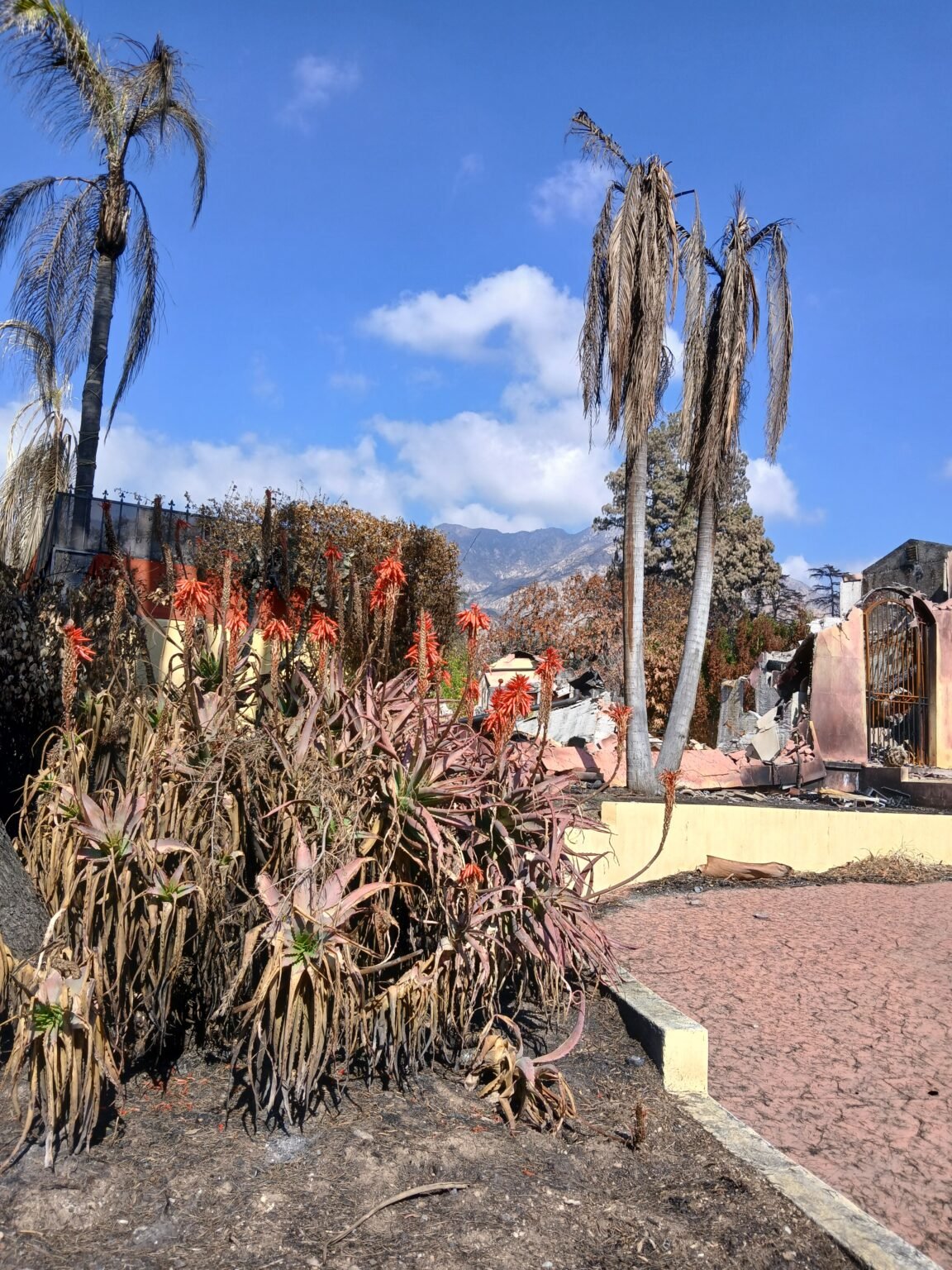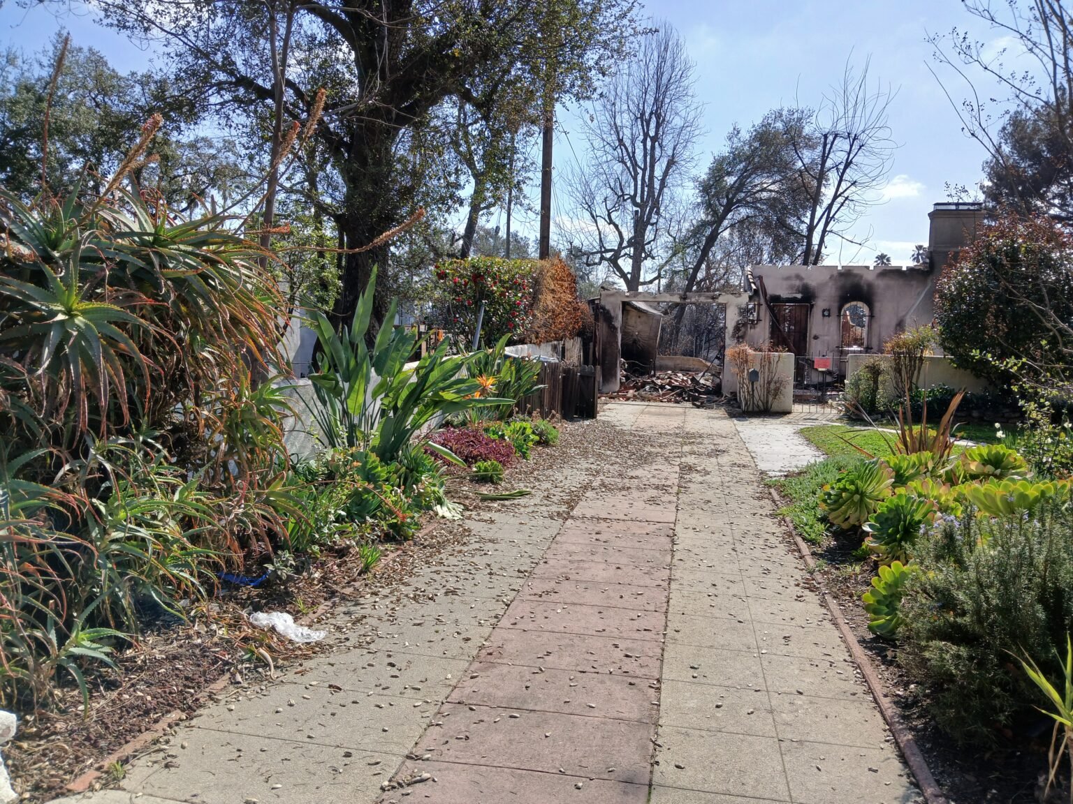Header image: Altadena Survivor with burnt Eucalyptus, resistant landscape and good architecture. All Photos by: Douglas Kent, MS, MLA