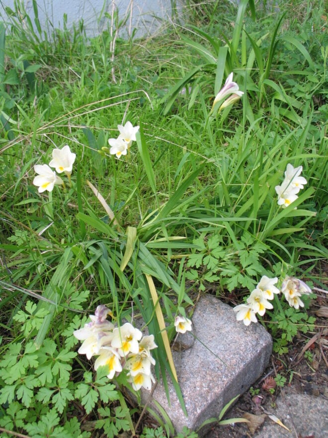 These smell absolutely wonderful, an intensely sweet almost citrusy smell, but not actually citrusy. The scent will not come find you, you have to go get your face in there. The scent seems to be consistent, unlike the variety of fragrances from modern hybrids. Some websites claim the modern hybrids are easier to grow, but my experience has been the opposite. I’ve killed many hybrid Freesia, but these keep coming back.