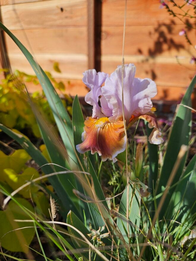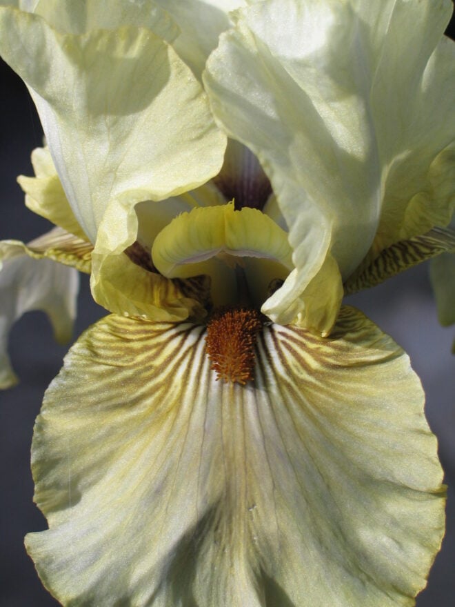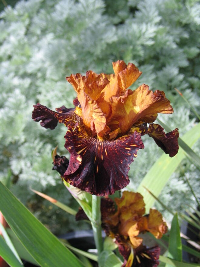 Bearded irises are named such for the fuzzy “beards” on the falls (lower petals).